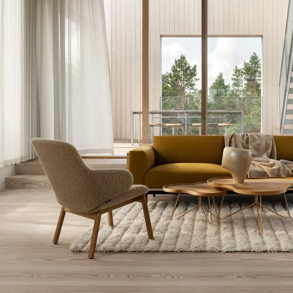 Curvas amables y una ergonomía estudiada que acompañan el cuerpo con naturalidad. Disponible con distintas bases para adaptarse al proyecto, mantiene el sello escandinavo de madera bien trabajada y confort honesto. Versátil para hogar, oficinas y hospitality. Diseño de Khodi Feiz.
