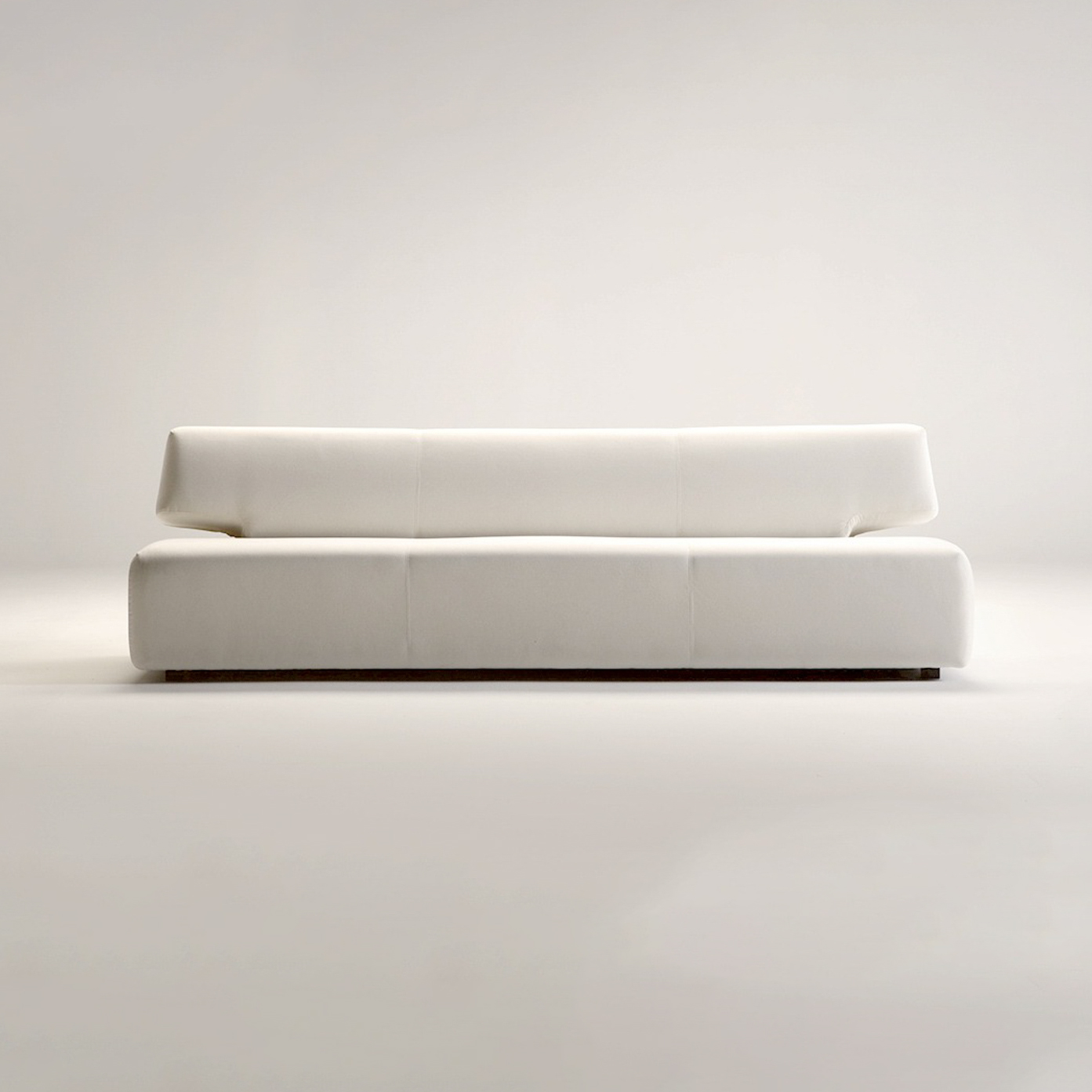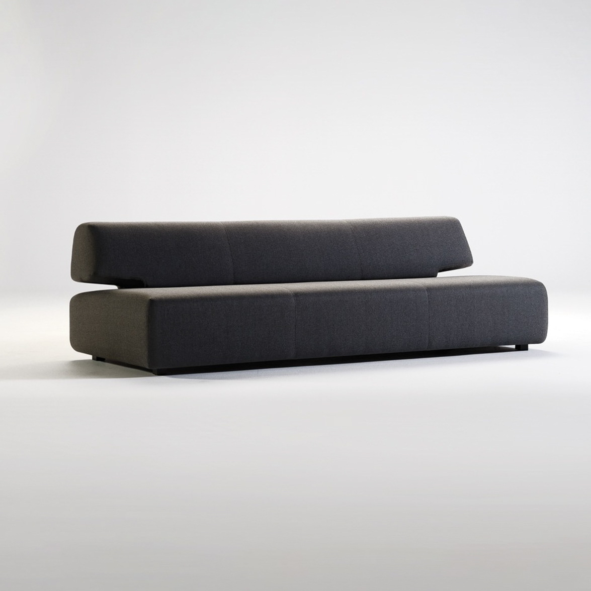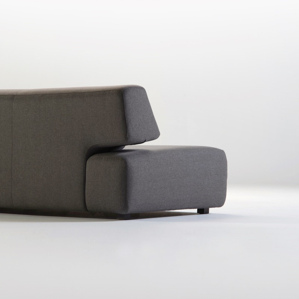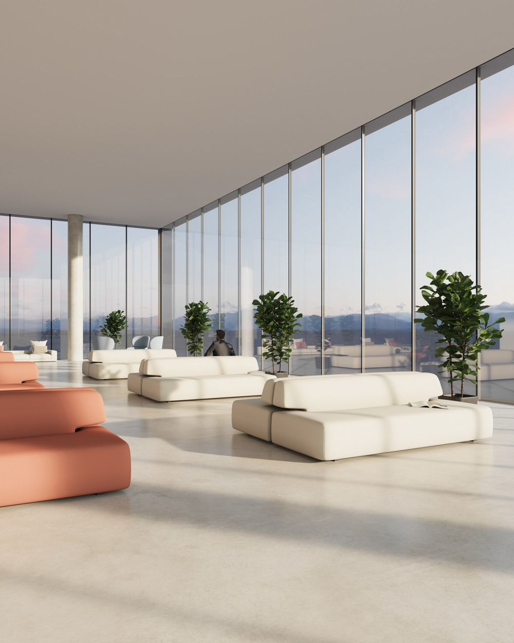 Curvas fluidas y silueta continua convierten a Athos en un imán visual. Su ergonomía acompaña el cuerpo con una sentada envolvente y relajada, perfecta para largas sobremesas. La ausencia de brazos refuerza la amplitud y la versatilidad del espacio. Diseño de Lluís Codina.