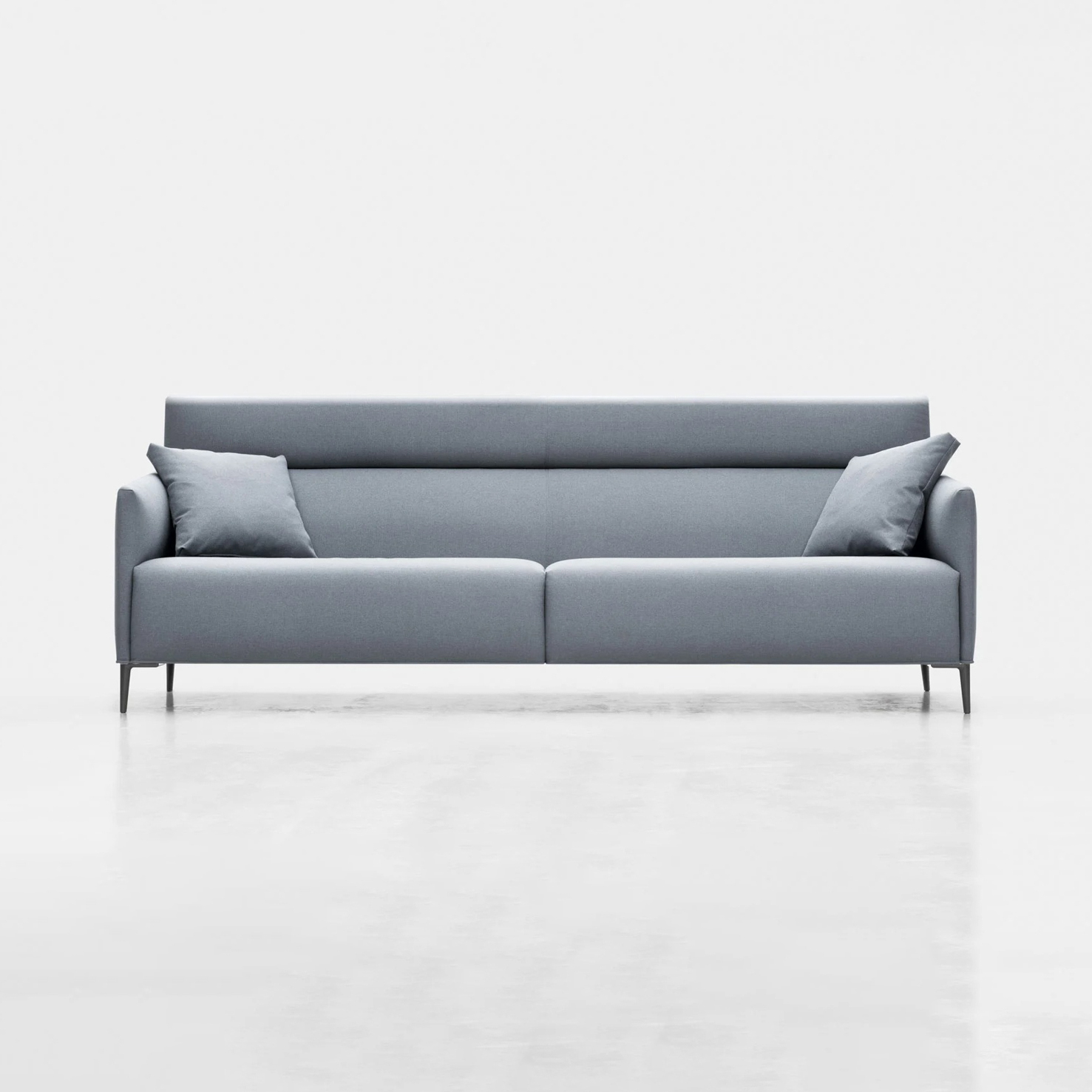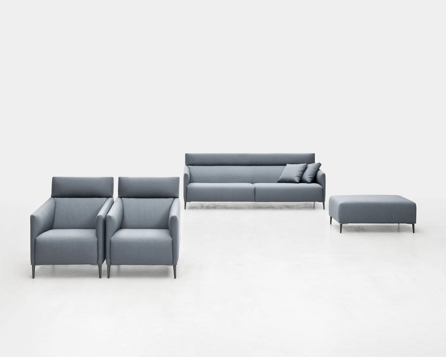 Sutil, ligero, sofisticado. Estructura envolvente muy ligera y patas metálicas delicadas que no renuncian a un respaldo alto y cómodo. Un aliado perfecto para espacios elegantes y minimalistas. Diseño de Mario Ruiz.