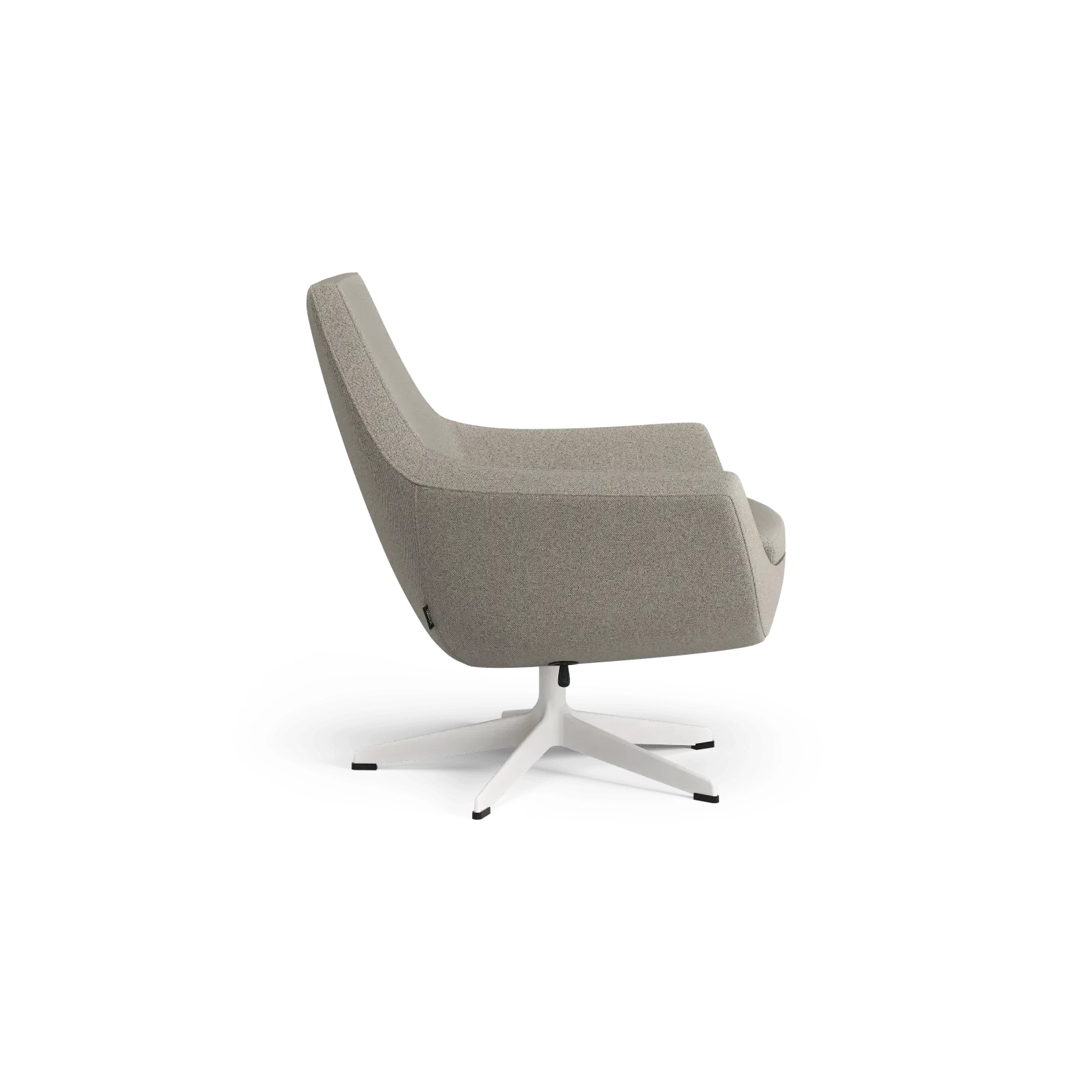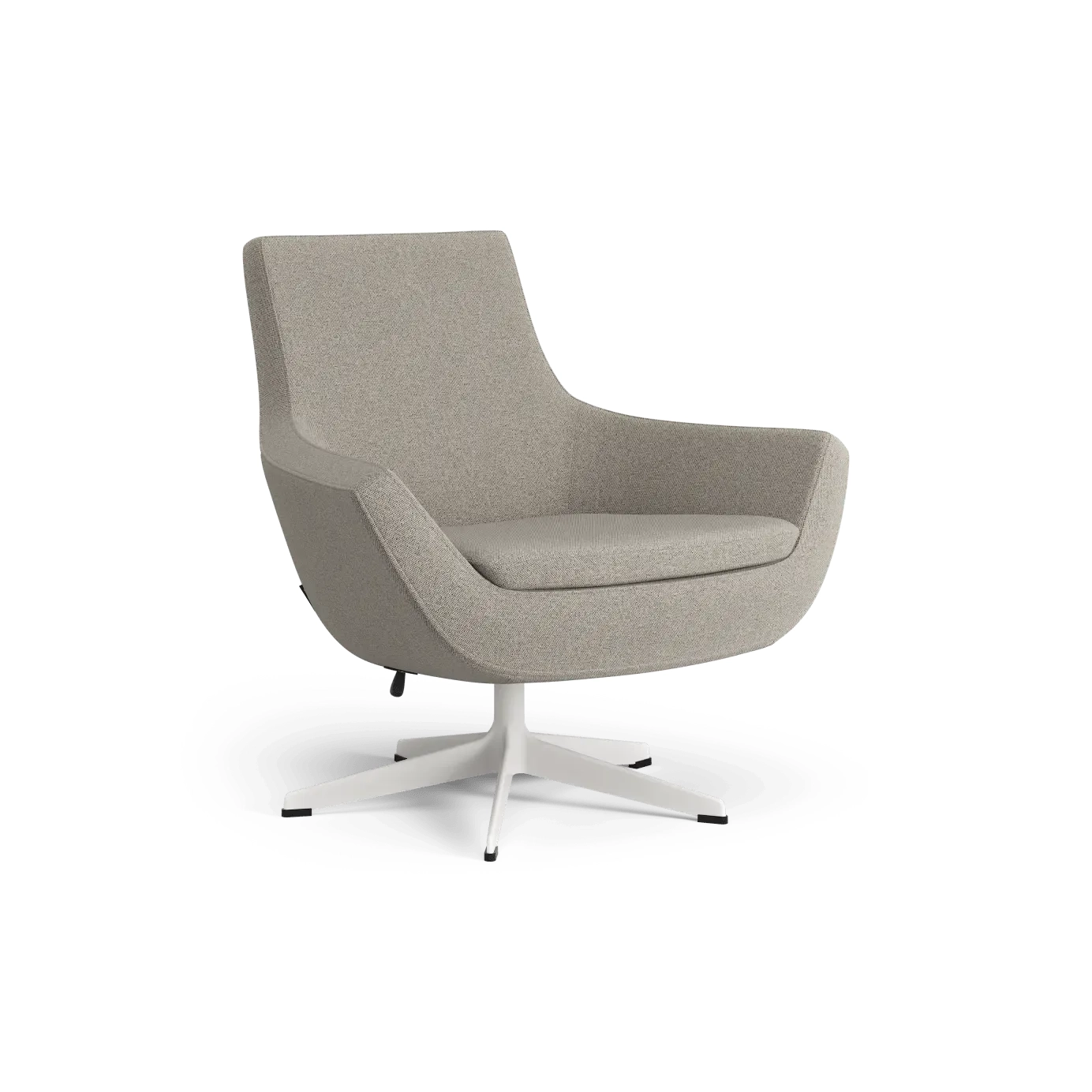 Silueta más contenida con la misma comodidad característica de Happy. La base giratoria de 5 radios —disponible en varios acabados— admite balanceo y retorno, facilitando el uso dinámico en salas de espera, lobbies y despachos. Diseño de Roger Persson.