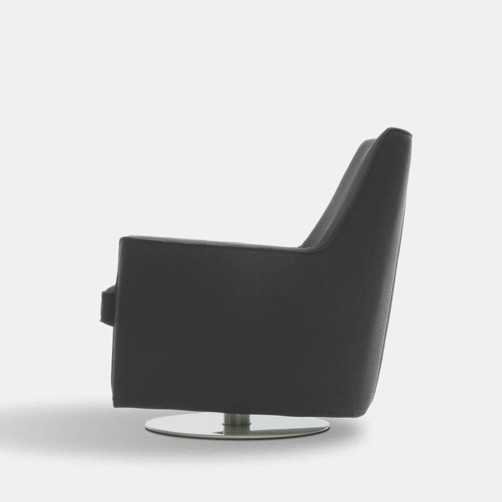 Respaldo alto, costura perimetral y base plana o en cruz para un look sobrio y potente. Hat aporta presencia sin perder funcionalidad, apta para lectura o recepción. Su silueta limpia combina con muebles de líneas rectas o curvas. Diseño de Dario Gagliardini.