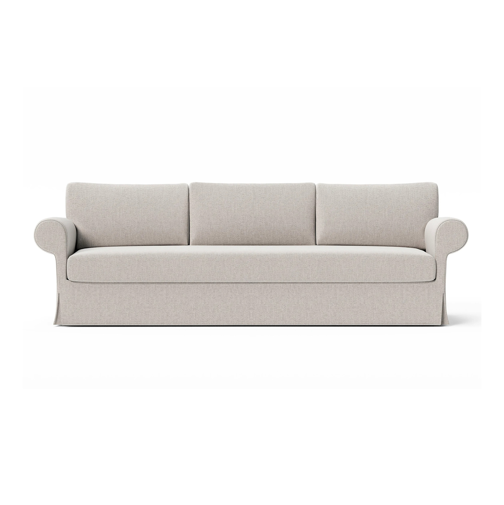 La misma comodidad profunda y los brazos redondeados, ahora con faldón hasta el suelo para una imagen continua y clásica. Ideal si buscas una estética majestuosa y serena. Diseño de Mario Ruiz.