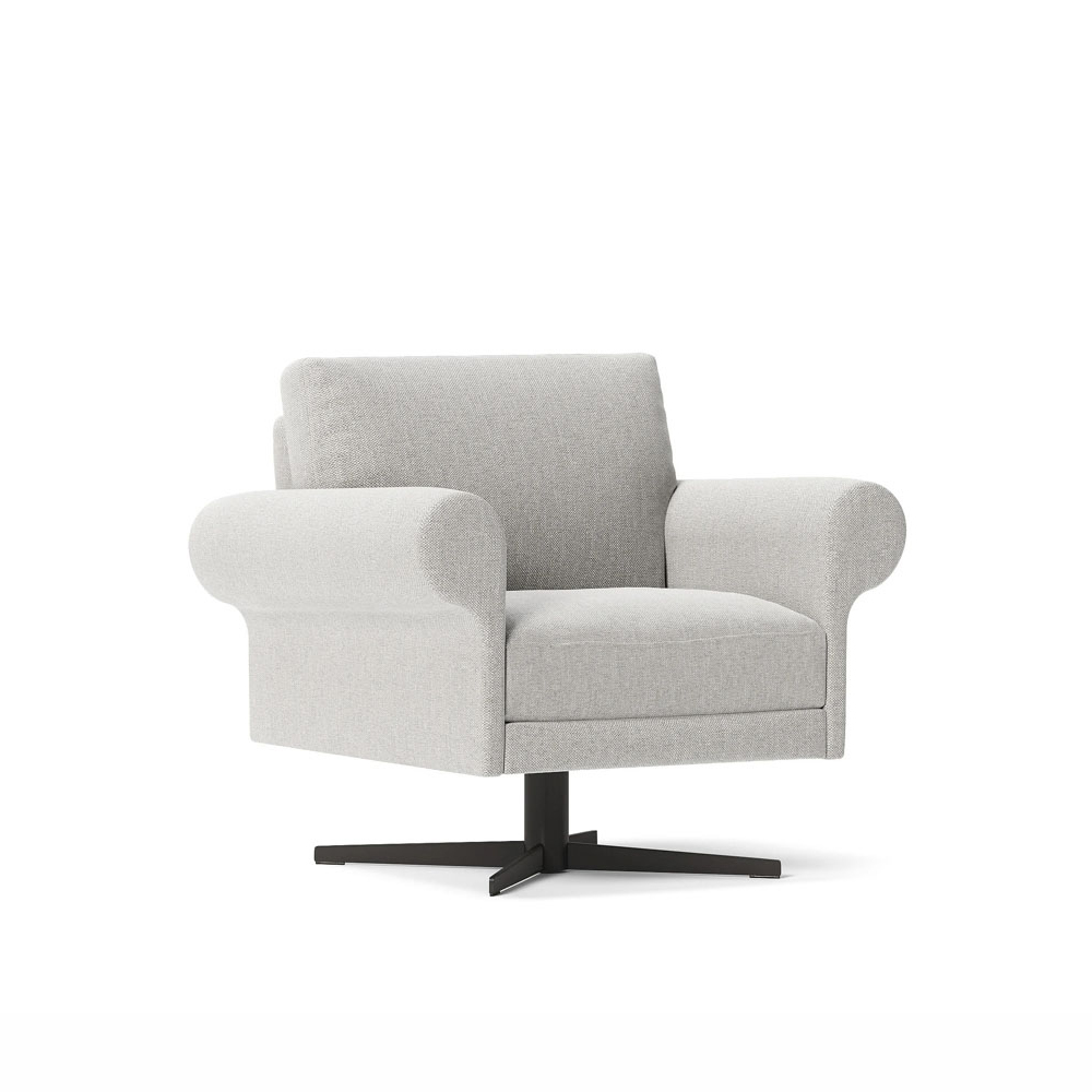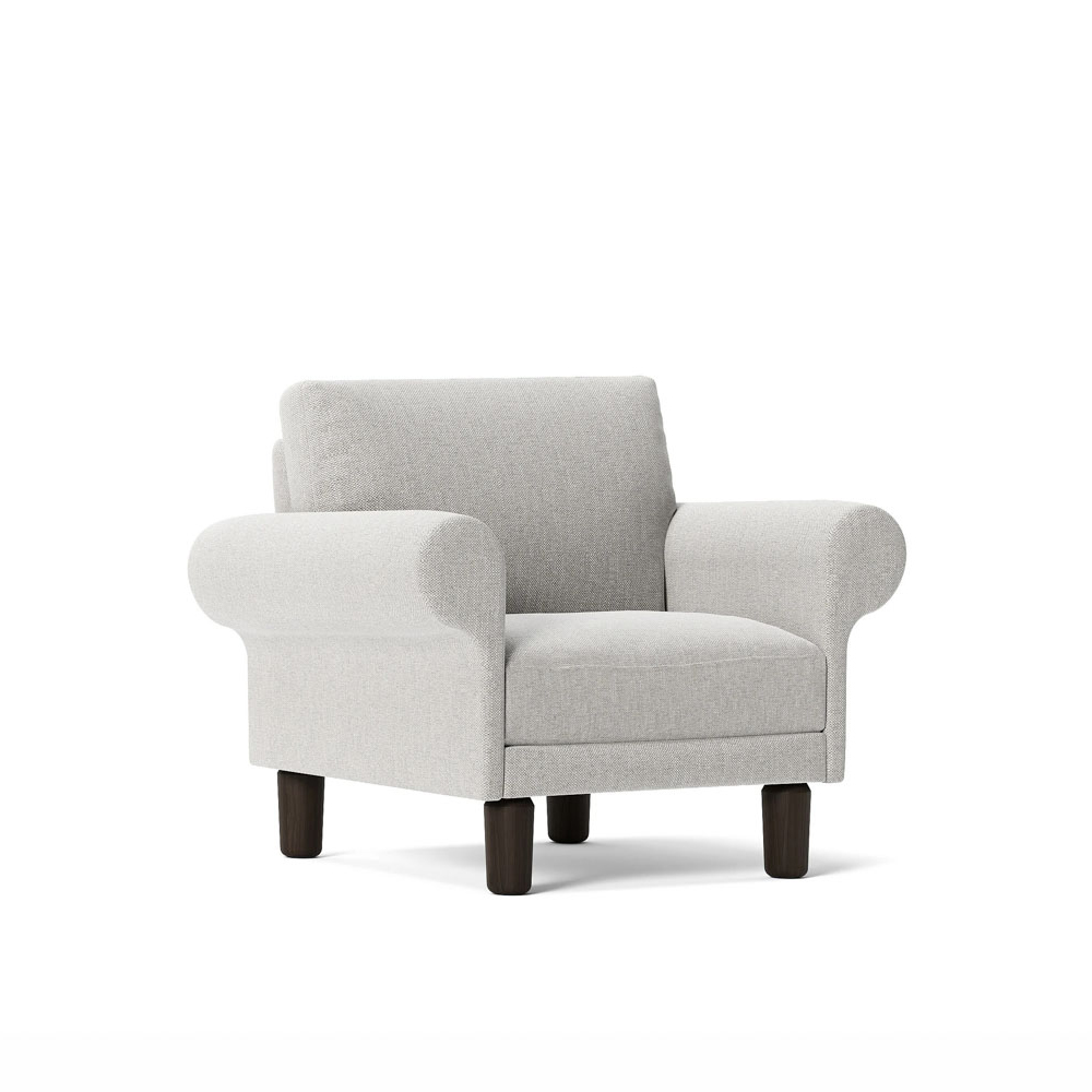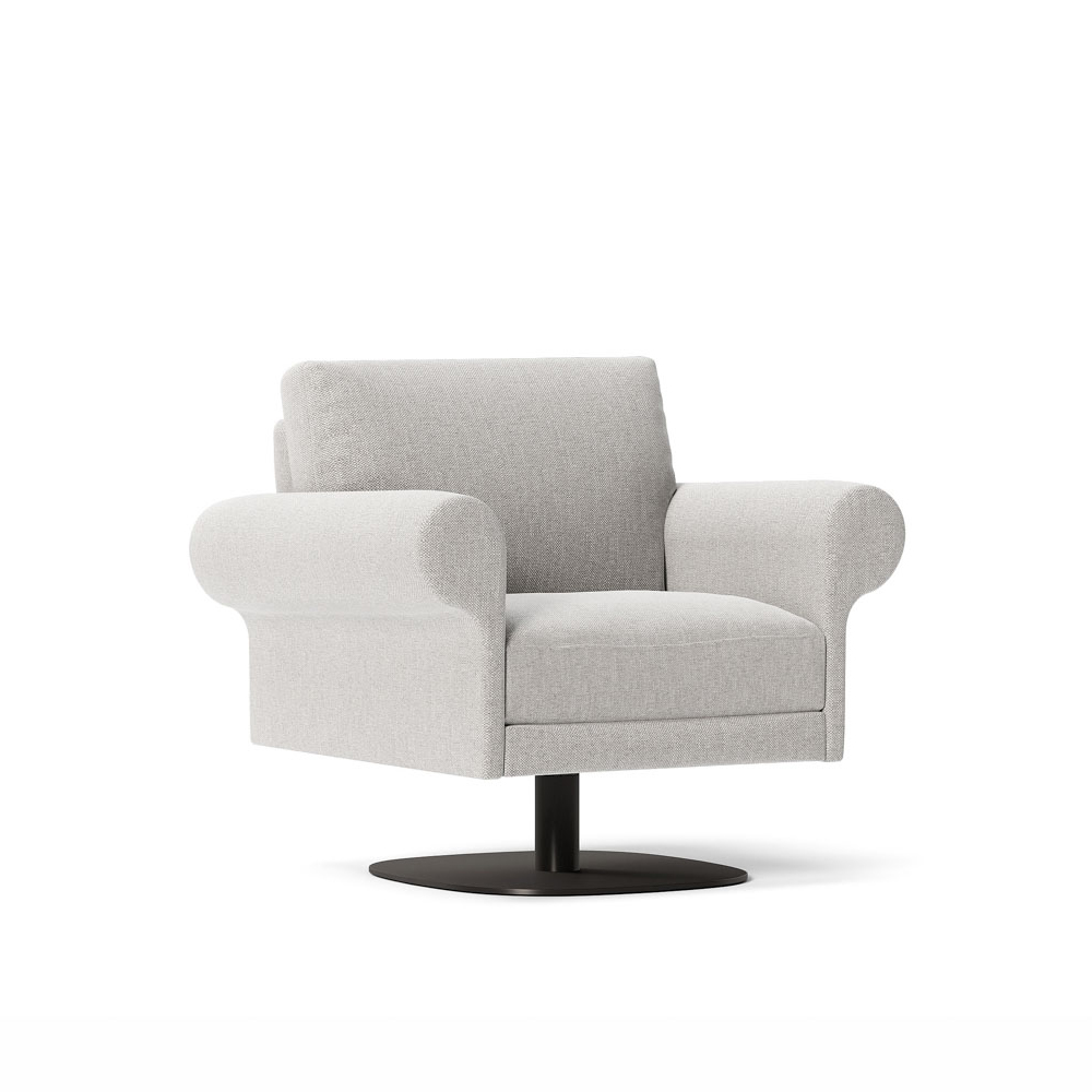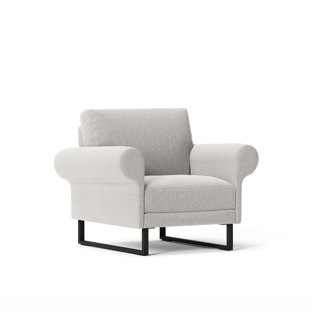 Volumen generoso y brazos amables, elevados sobre patas vistas para una sensación más ligera. El cojín de asiento profundo asegura comodidad duradera. Perfecta para un salón con presencia sin perder elegancia. Diseño de Mario Ruiz.