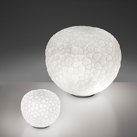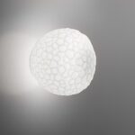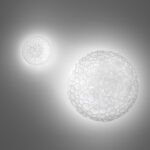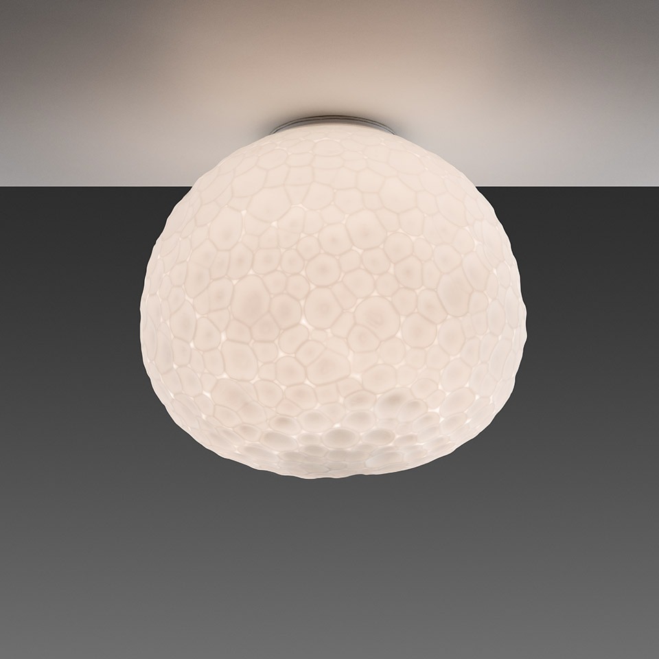 La luminaria Meteorite Wall/Ceiling es una verdadera obra de arte funcional. Su difusor, elaborado a mano con vidrio artístico doble capa mediante una técnica artesanal de soplado sin giro de molde, evoca la tradición del vidrio batido de Murano.