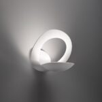 La Pirce Parete de Artemide es una luminaria que trasciende lo funcional para convertirse en un auténtico objeto de diseño. Su disco exterior fluye en espiral desde la pared, generando una silueta en constante movimiento que se convierte en elemento decorativo activo, tanto encendida como apagada.