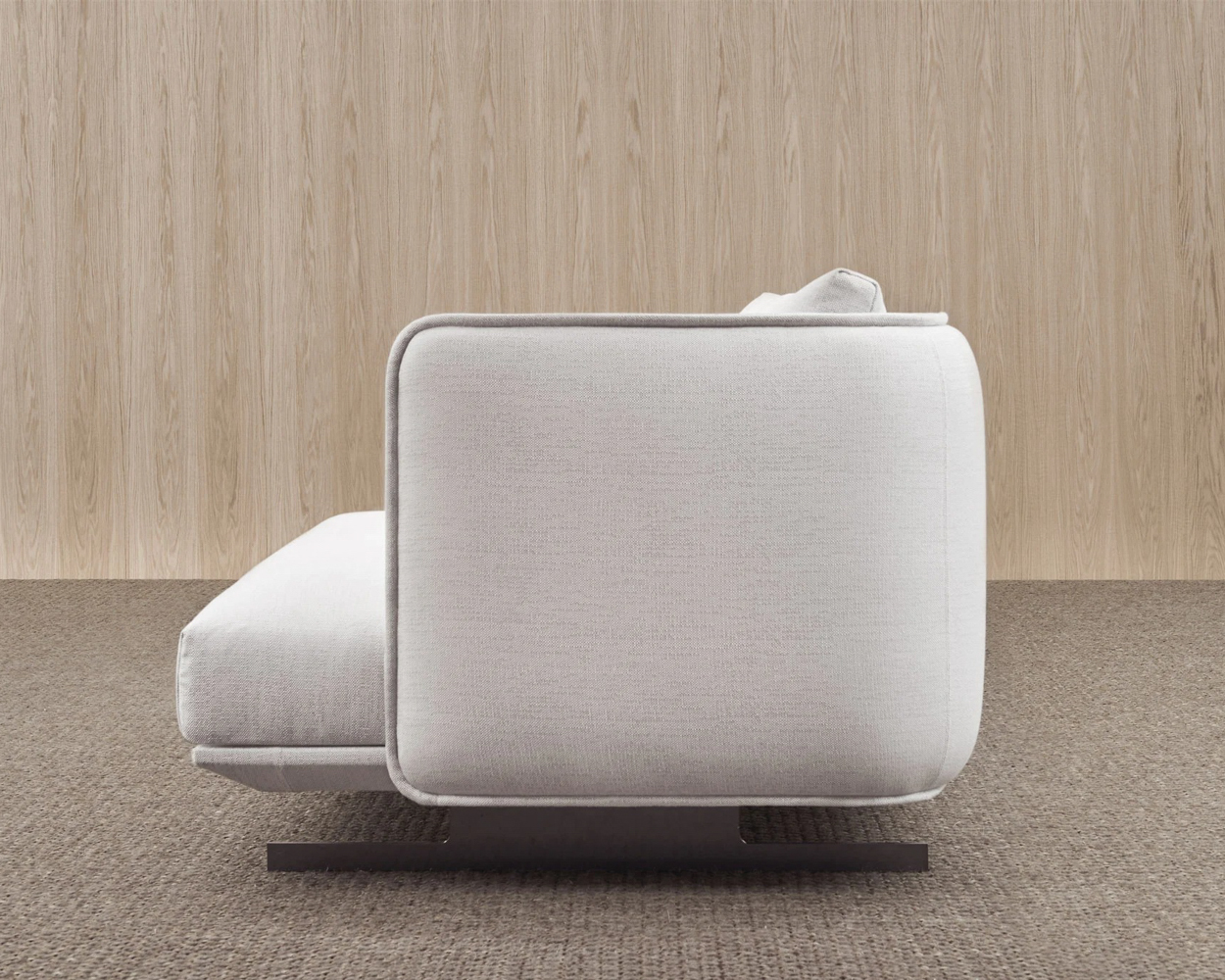 Elegancia en equilibrio: brazos y respaldo continuos, costuras cuidadas y base elevada que aligera el conjunto. Dos profundidades y dos alturas te permiten afinar la ergonomía, con elementos auxiliares en madera a juego. Pieza versátil para relajarse… y lucirse. Diseño de Mario Ruiz.