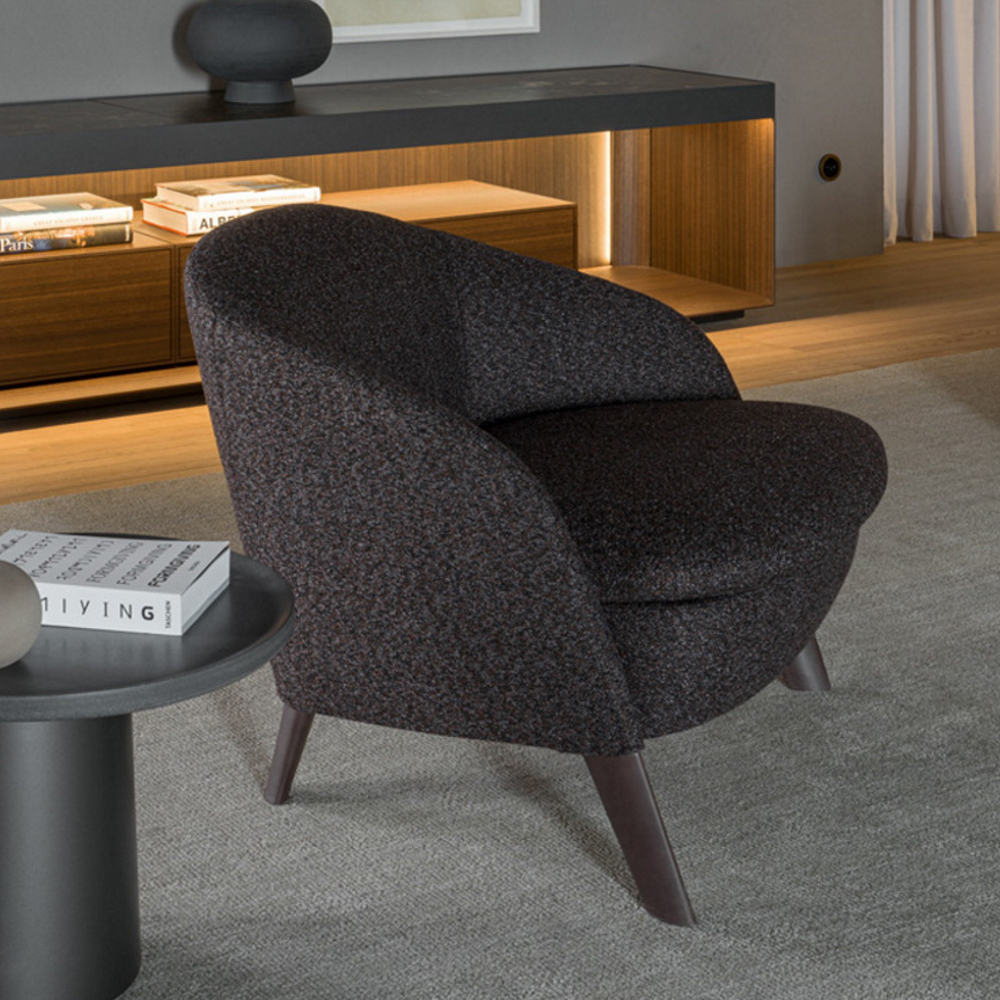 Suaves curvas y un volumen continuo que integra brazos y respaldo para un abrazo cómodo desde el primer momento. El asiento ofrece soporte estable con una sensación mullida ideal para lectura o conversación. Su lenguaje discreto encaja tanto en salones contemporáneos como en suites de hotel. Diseño de Rodolfo Dordoni.