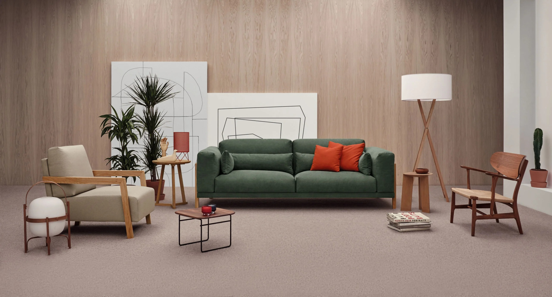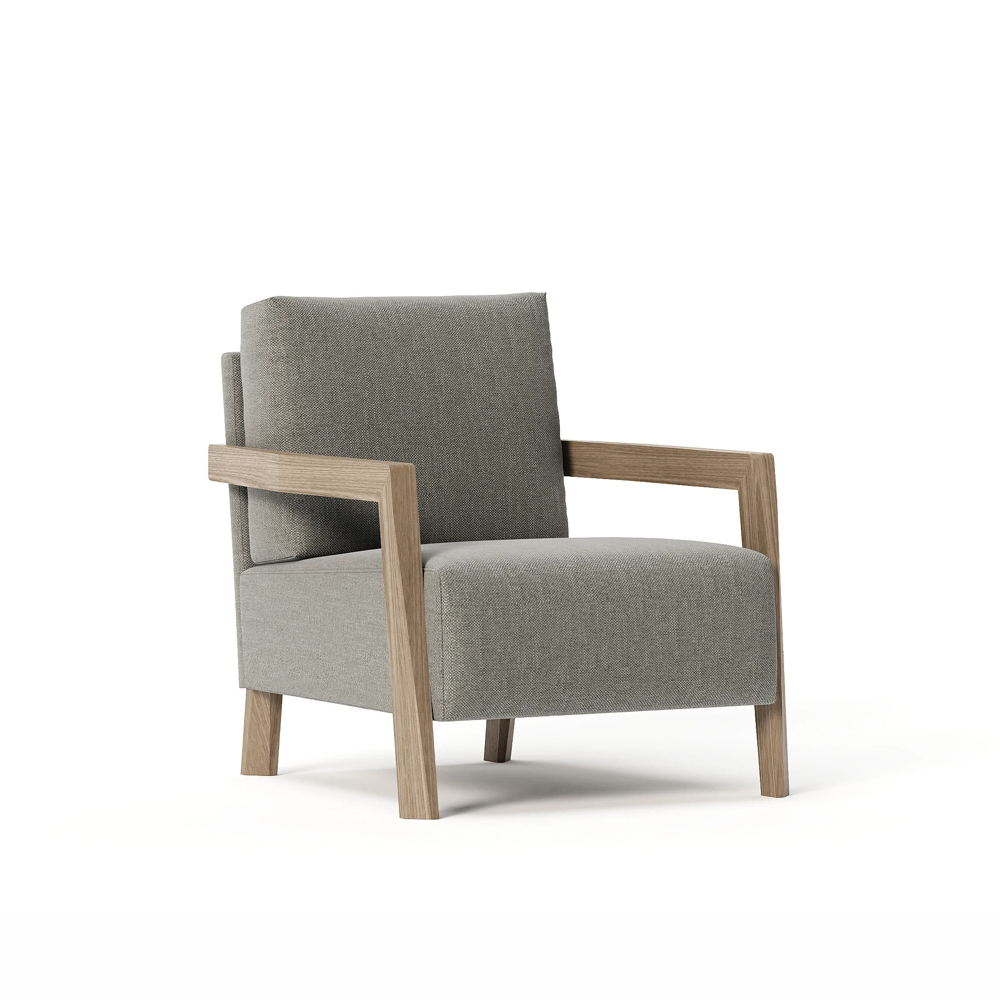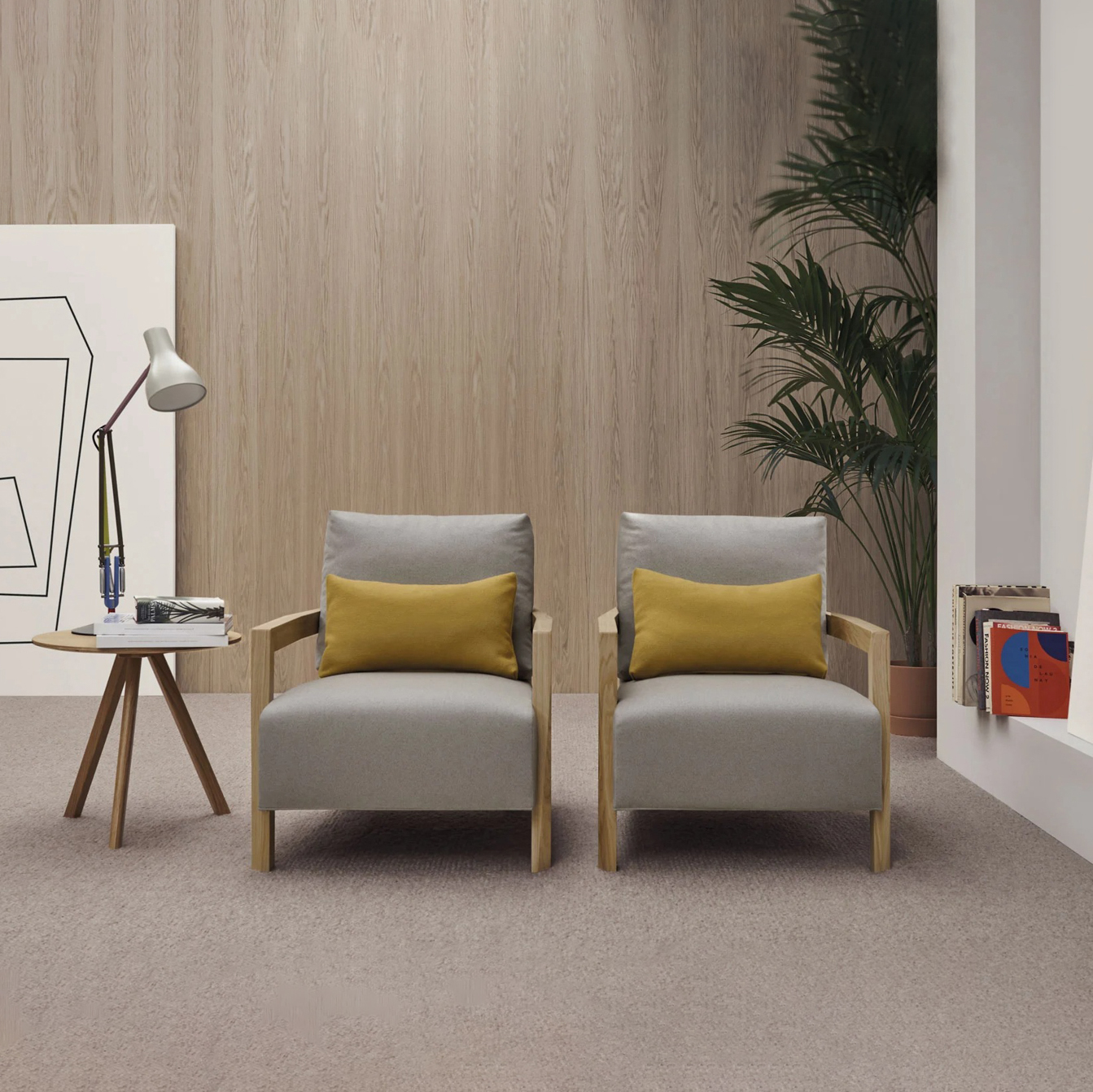 El distintivo apoyabrazos de roble realza un asiento amplio y generoso. Time ofrece una sentada acogedora que invita a quedarse, ya sea en casa o en espacios contract. La versión con base pedestal aporta un giro contemporáneo muy funcional. Diseño de Mario Ruiz.