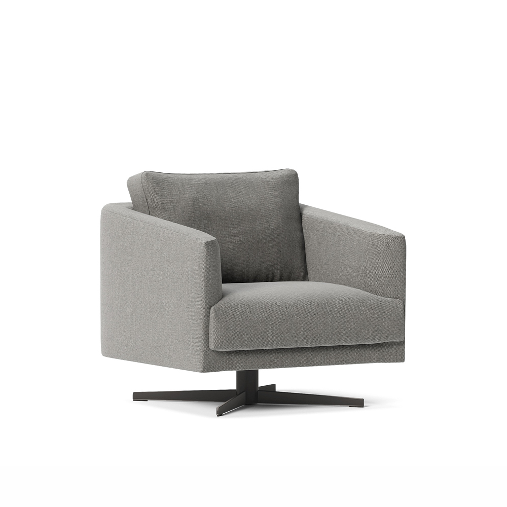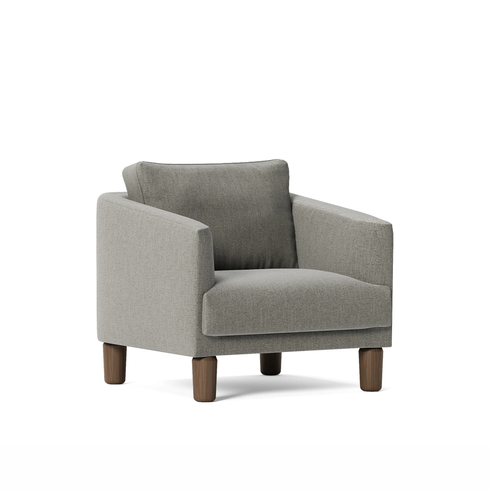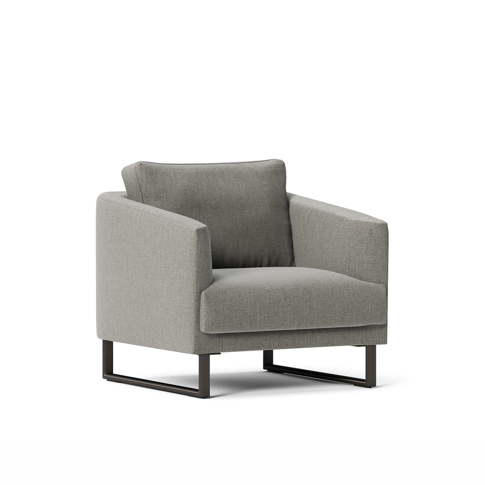Lenguaje equilibrado, brazos suavemente inclinados y asiento único que sostiene con naturalidad. La base vista —en madera o metal— aporta ligereza y define el estilo. Una pieza versátil que encaja en ambientes modernos o más tradicionales. Diseño de Mario Ruiz.