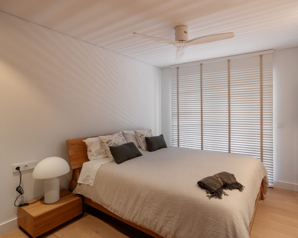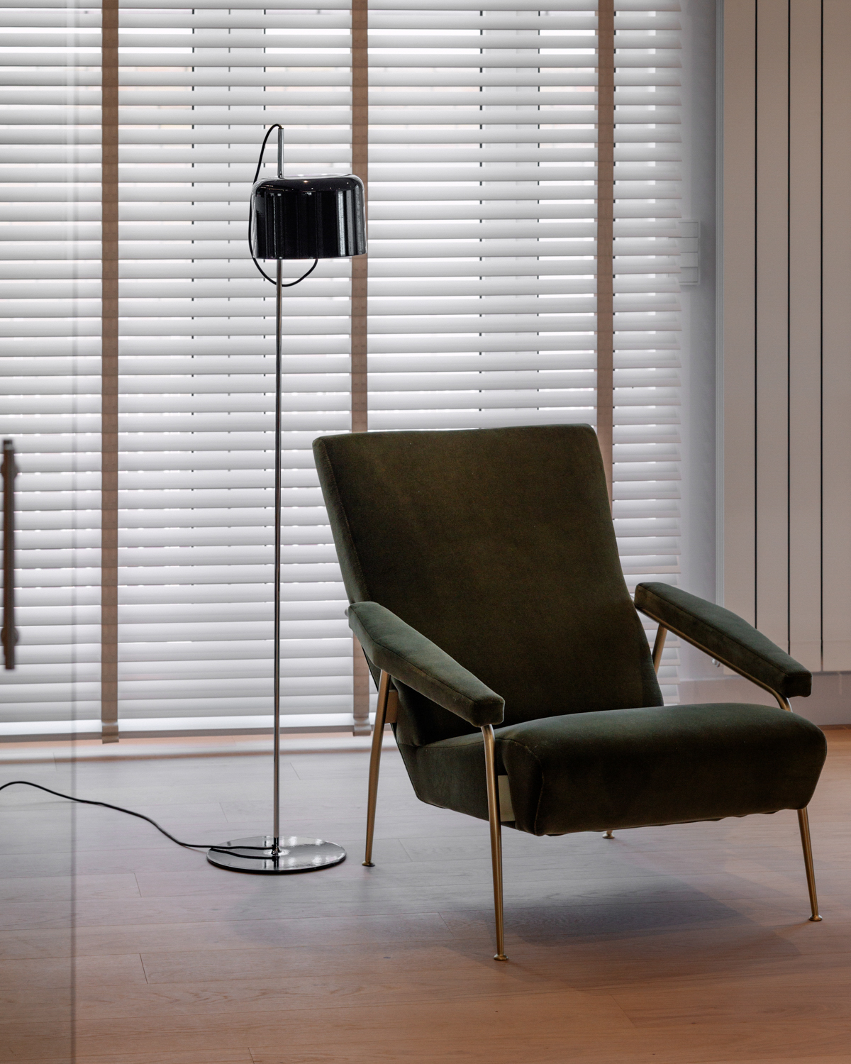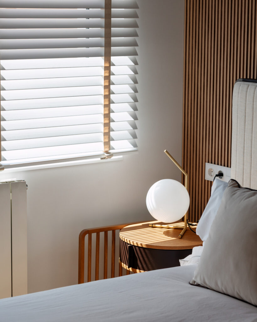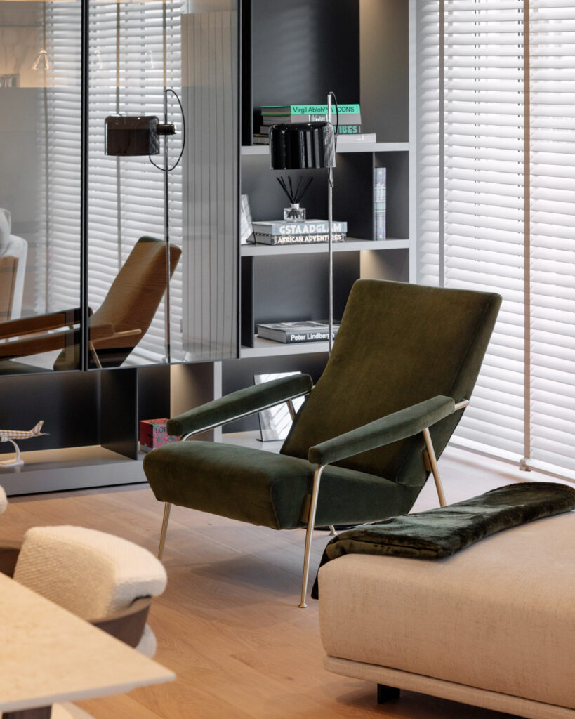 La selección de piezas combina diseño contemporáneo y clasicismo atemporal. El sillón de Gio Ponti para Molteni&C aporta carácter y equilibrio en la zona de estar, mientras que las soluciones de protección y cerramiento de Saxun matizan la entrada de luz y mejoran el confort. El resultado es un hogar contenido y luminoso, a pocos pasos de la Plaza de la Trinidad, en Granada.