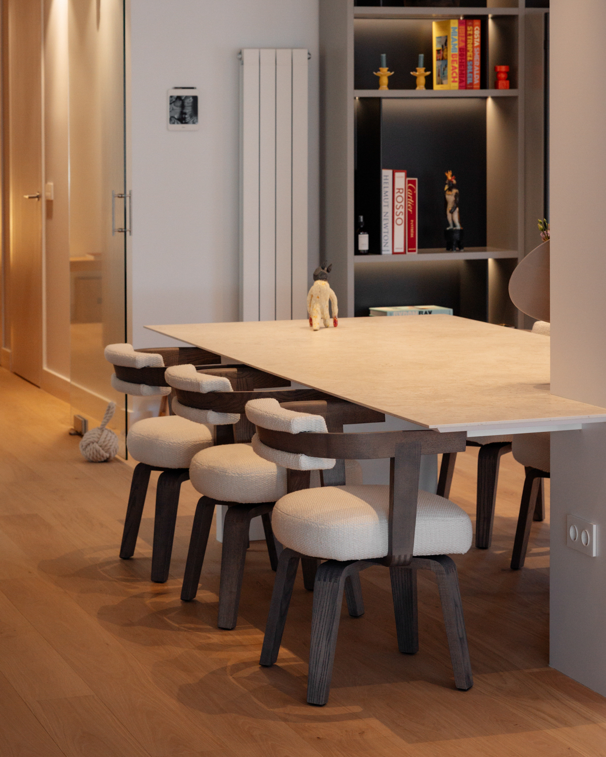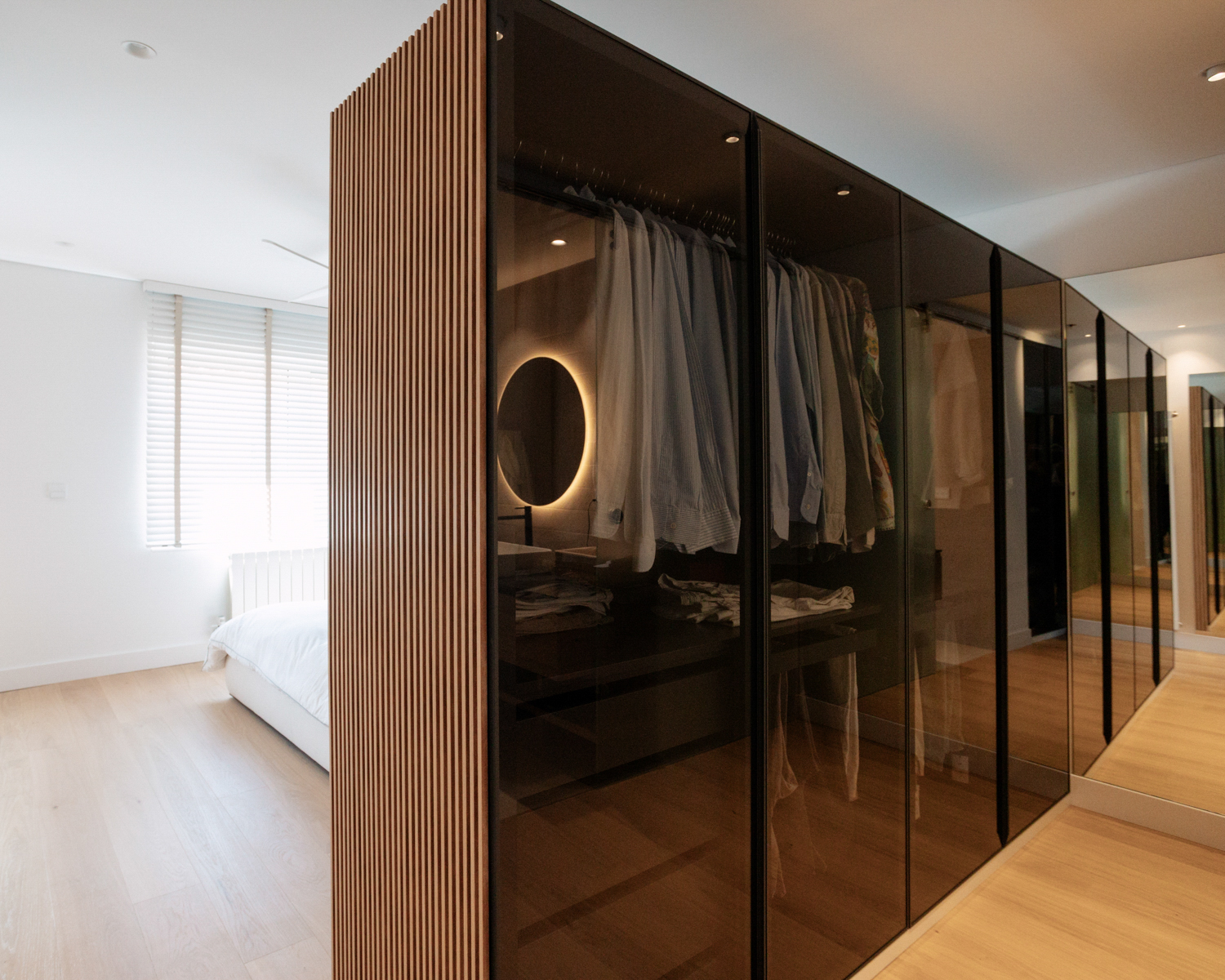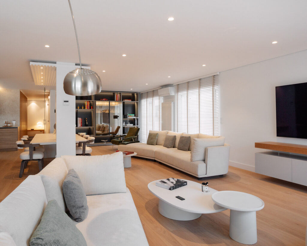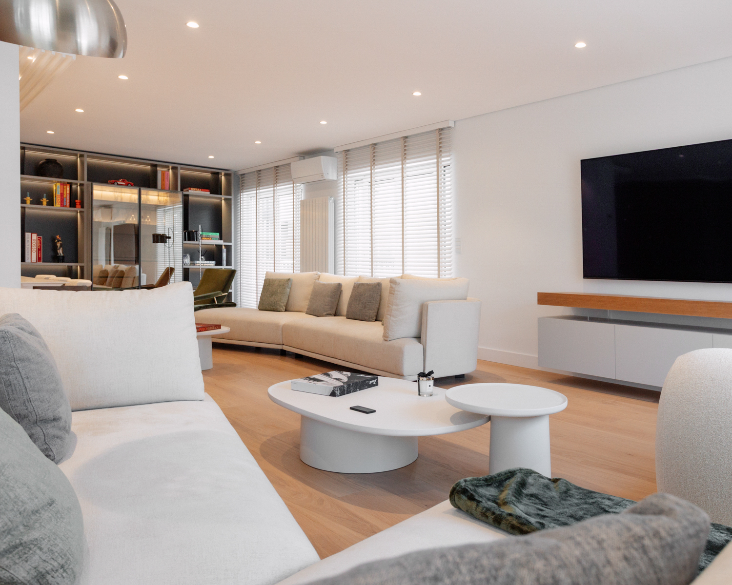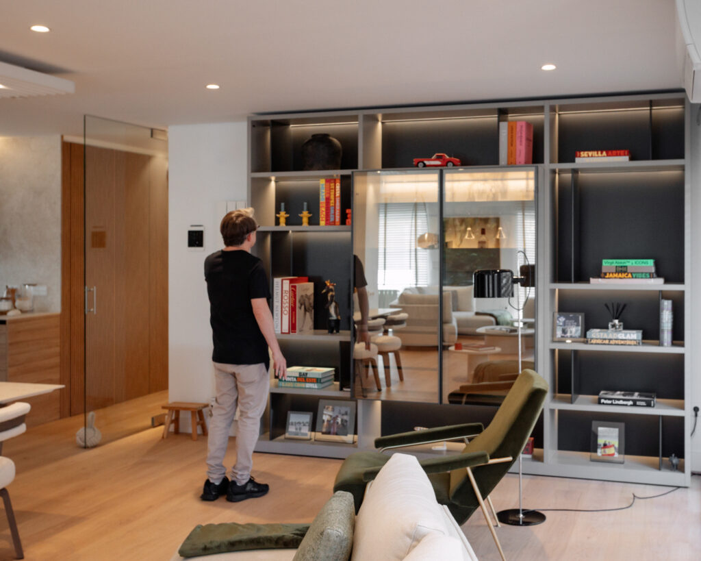Un hogar pensado para vivirlo. Cada estancia se integra en un conjunto continuo: materiales nobles, texturas agradables al tacto y una gama de colores equilibrada que permite que la luz recorra el espacio con naturalidad. La iluminación, planificada en distintos niveles (general, ambiente y acento), junto con el almacenamiento a medida, mantiene el orden y refuerza la calidez del conjunto.