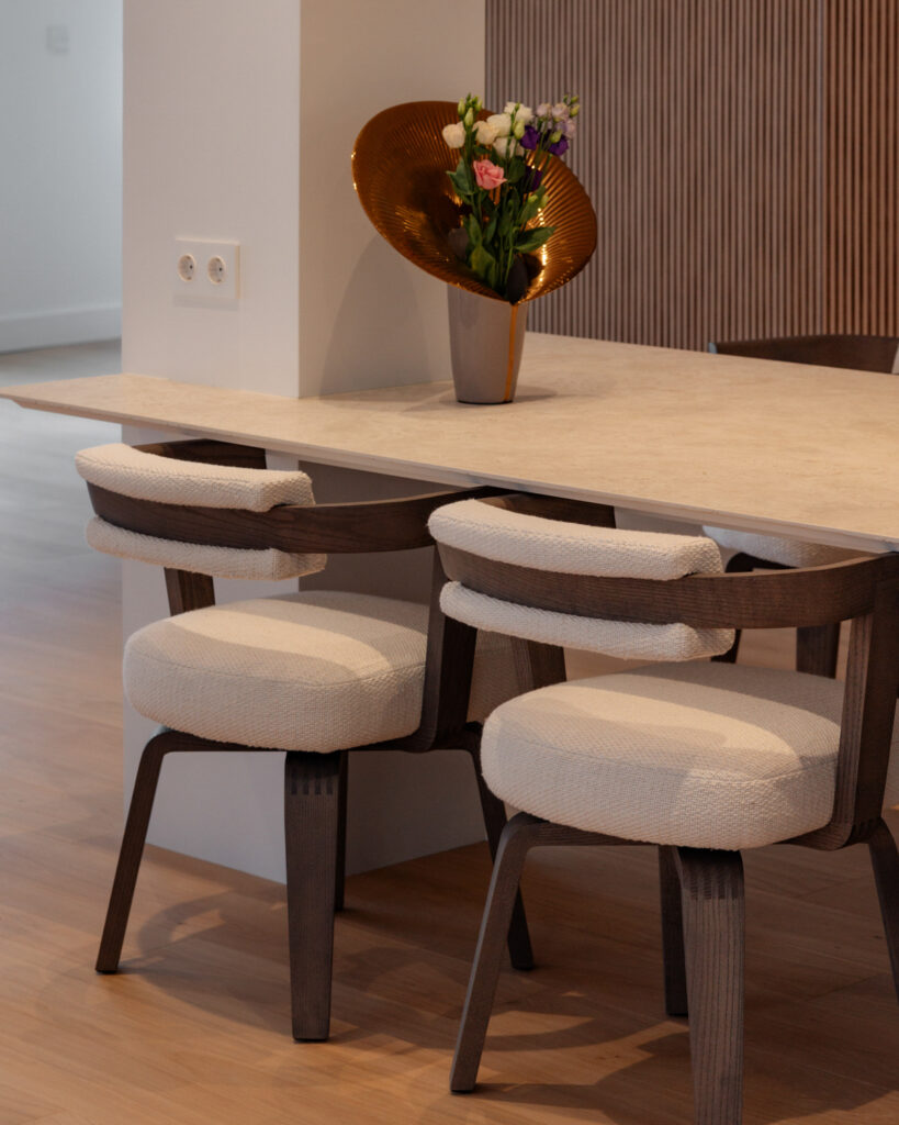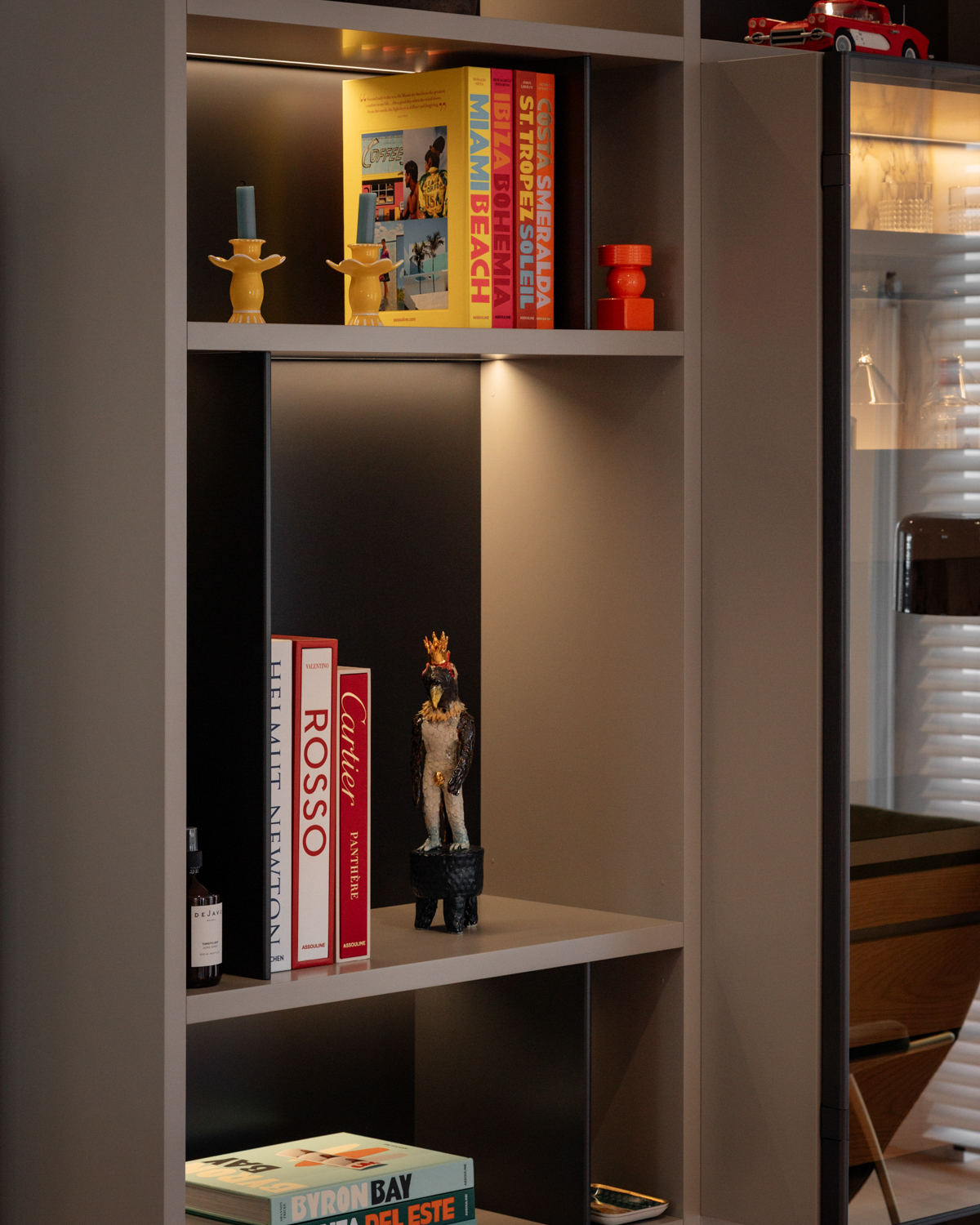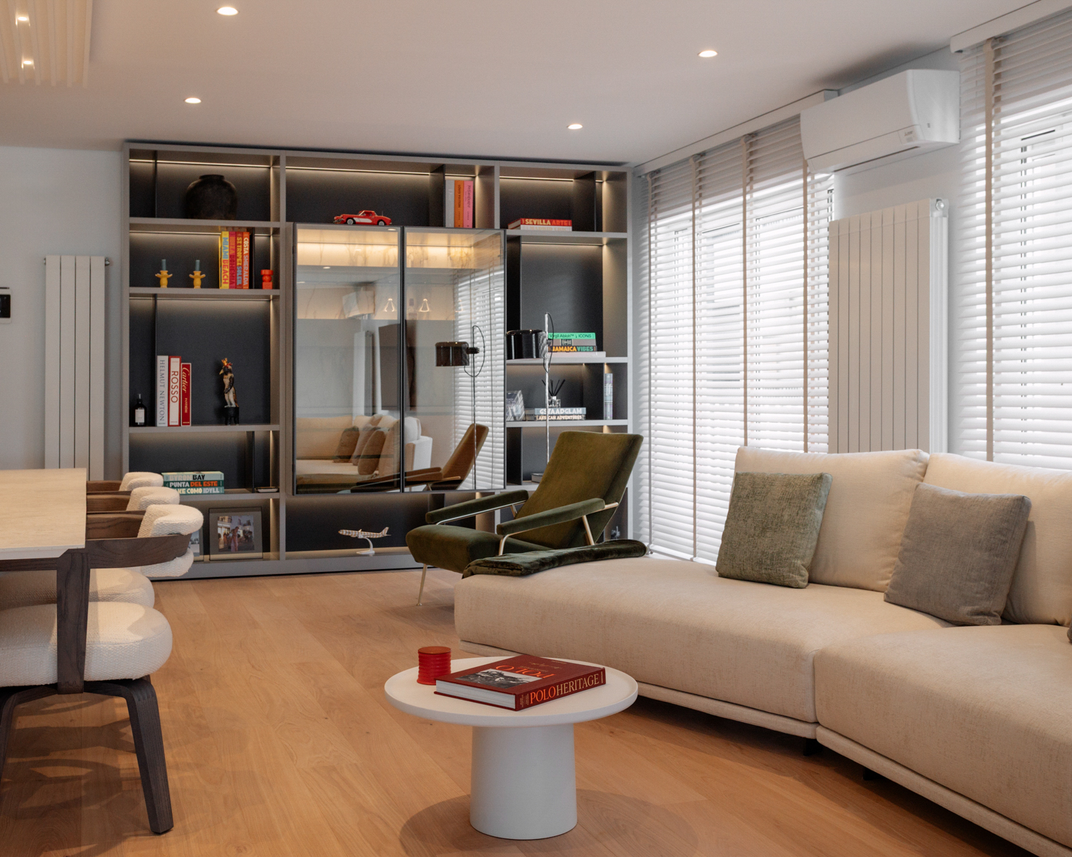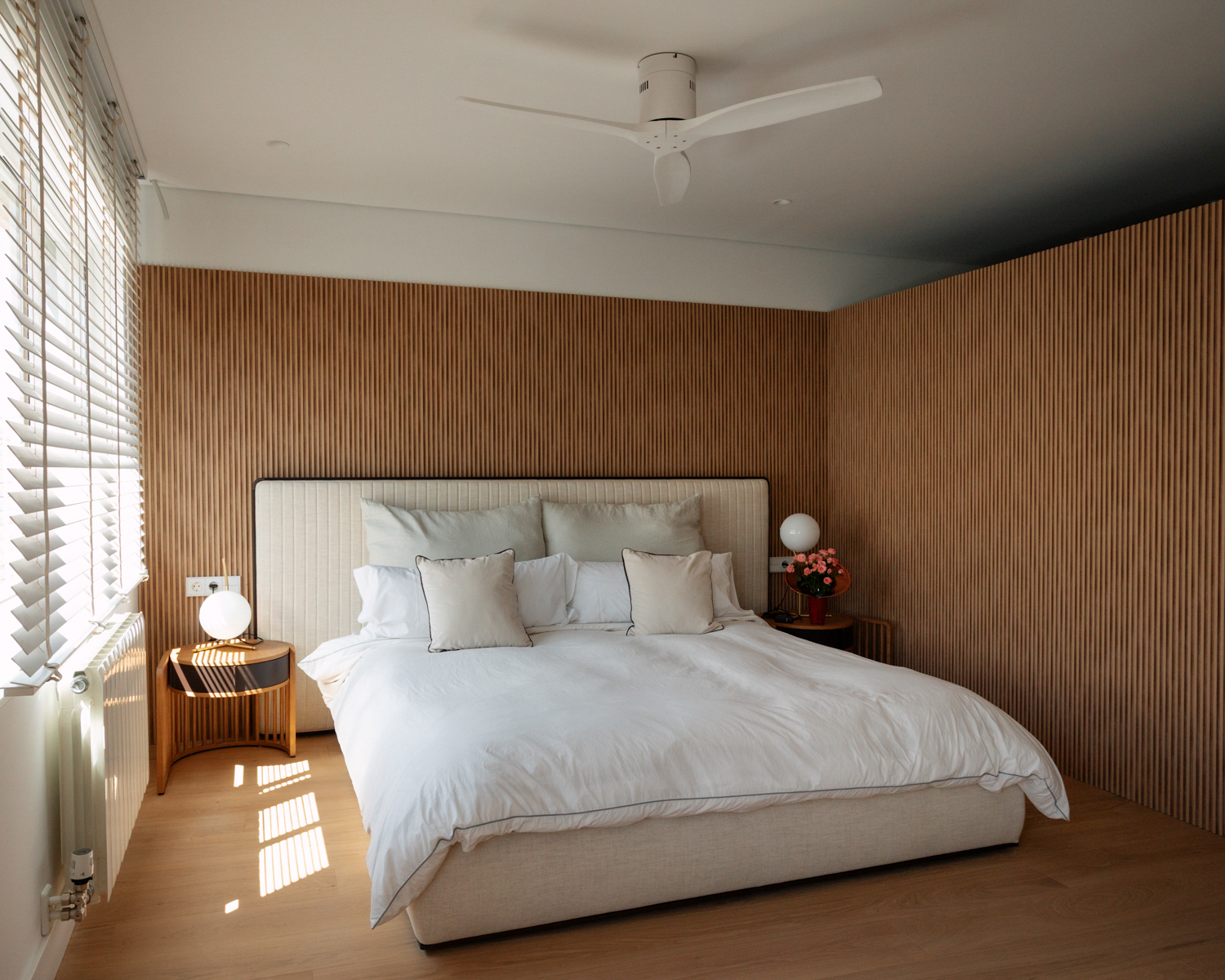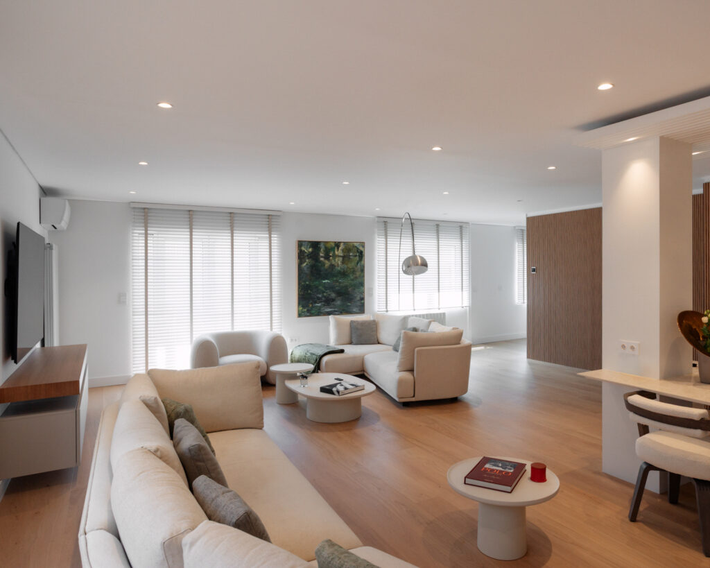 Un hogar pensado para vivirlo. Cada estancia se integra en un conjunto continuo: materiales nobles, texturas agradables al tacto y una gama de colores equilibrada que permite que la luz recorra el espacio con naturalidad. La iluminación, planificada en distintos niveles (general, ambiente y acento), junto con el almacenamiento a medida, mantiene el orden y refuerza la calidez del conjunto.